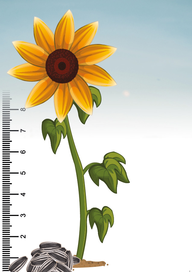 - Maak een foto van jouw zonnebloem, met de rolmaat ernaast. Zo kunnen we goed aflezen hoe hoog de zonnebloem is.